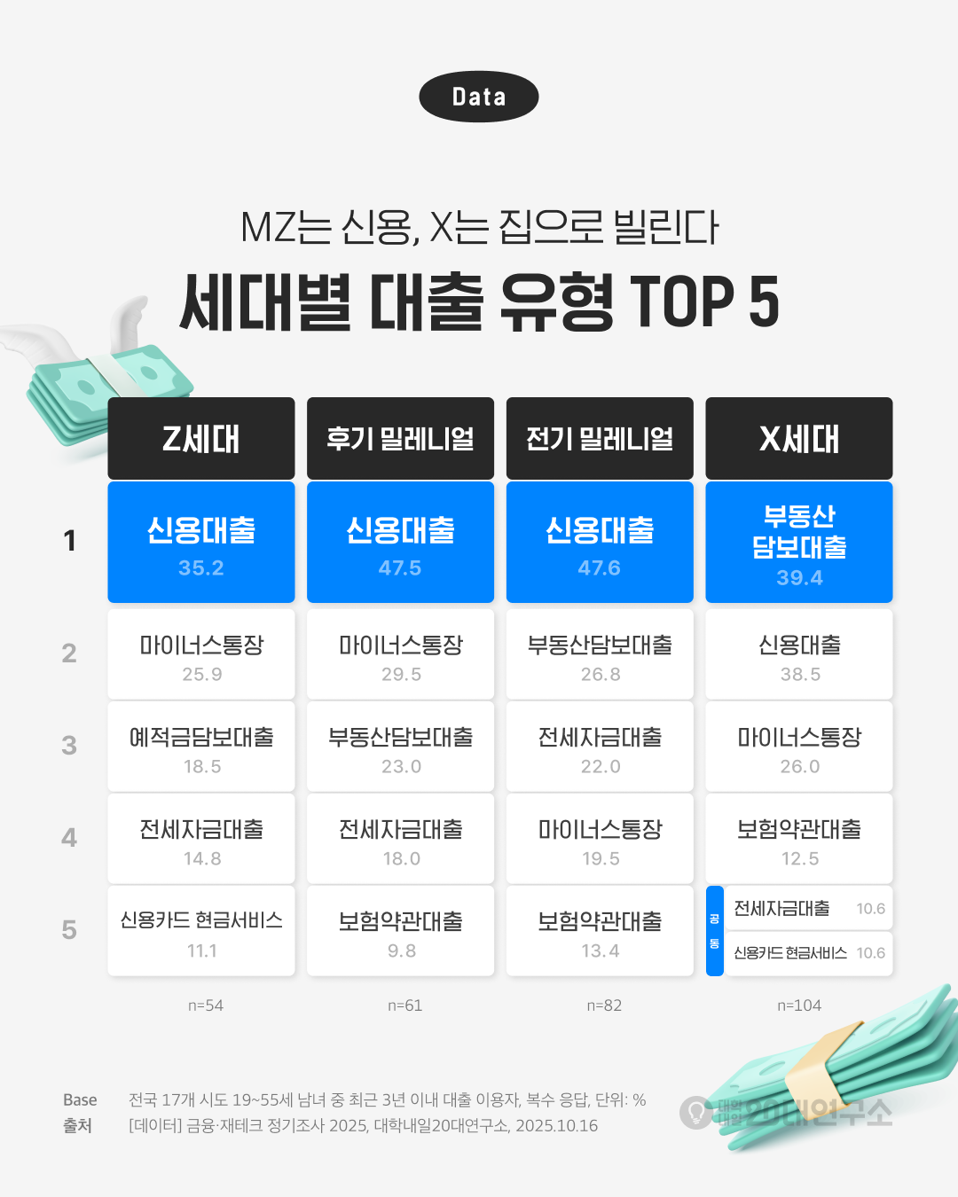 MZ는 신용, X는 집으로 빌린다? 세대별 대출 유형 TOP 5