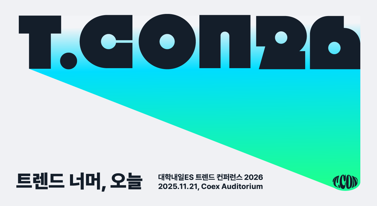 대학내일ES의 트렌드 컨퍼런스 T.CON은 지나간 한 해의 흐름을 읽고, 다가올 한 해를 준비하기 위한 비즈니스 인사이트를 제공하고 있습니다. 지난 11월 21일 코엑스에서는 열세 번째 트렌드 컨퍼런스 T.CON26이 개최되었는데요. 브랜드 실무자, 기획자, 마케터는 물론이고, CX·HR 담당자, 서비스 기획자까지. 변화의 흐름을 만드는 키스톤 컨슈머를 읽어내기 위해 다양한 업계 관계자들이 2000석을 가득 채웠습니다.