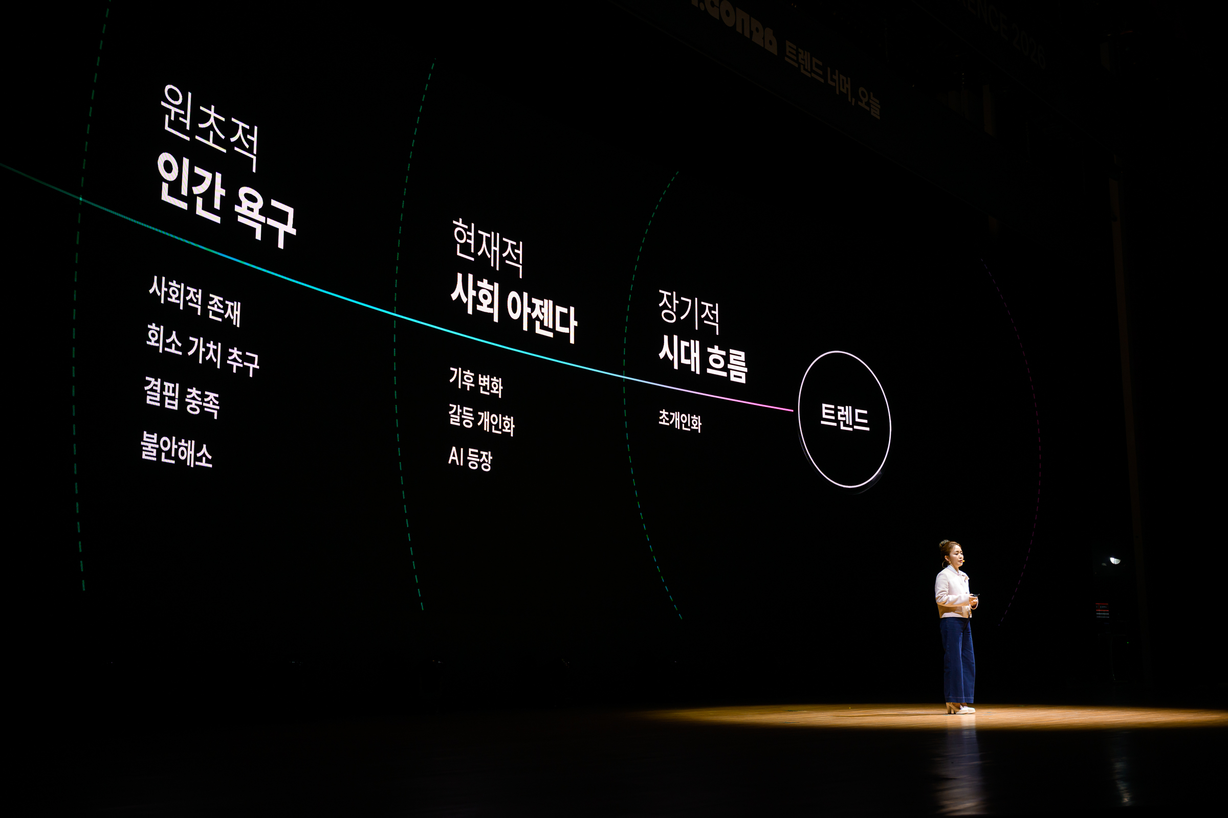 이번 T.CON26의 마지막 세션에서는 Z세대 소비자를 이해하기 위한 방법으로 ‘마이크로 모멘트의 분절 없는 맥락적 이해’를 강조했어요. Z세대의 기저 심리를 파악하기 점점 어려워지는 시대, 마이크로트렌드를 꾸준히 따라가는 것이 곧 Z세대를 이해하는 키가 되고 있습니다. 아울러 시대 흐름과 사회 아젠다, 원초적 인간 욕구와 결합해 통합적 맥락으로 살펴보면 다가올 시대에 뭐가 주목받을지 가늠할 수 있죠. |