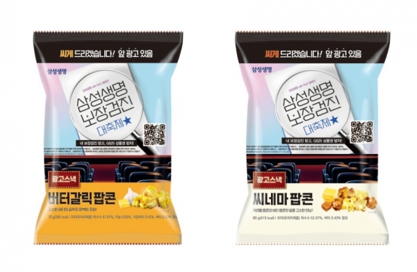 삼성생명 앞광고를 넣은 GS25 팝콘 @GS25 |
