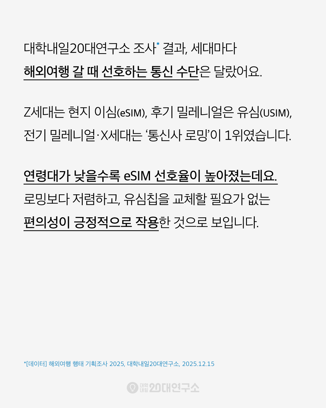 Z세대는 현지 이심(eSIM), 후기 밀레니얼은 유심(USIM),