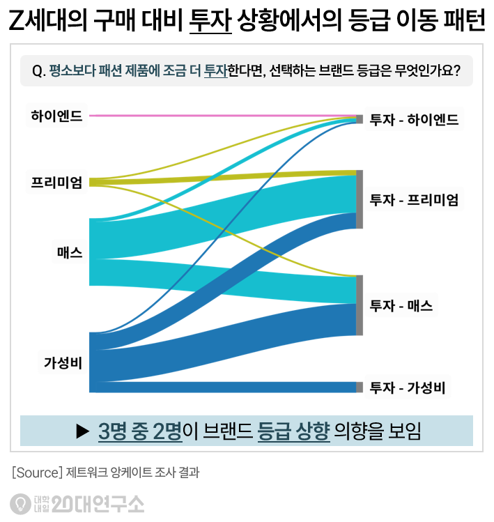 *이번 조사에서는 Z세대의 주관적 브랜드 인식을 분석하기 위한 기준으로 하이엔드·프리미엄·매스·가성비 등급을 구분해 제시했으며, 이는 산업에서 통용되는 공식 분류와 다를 수 있습니다. |