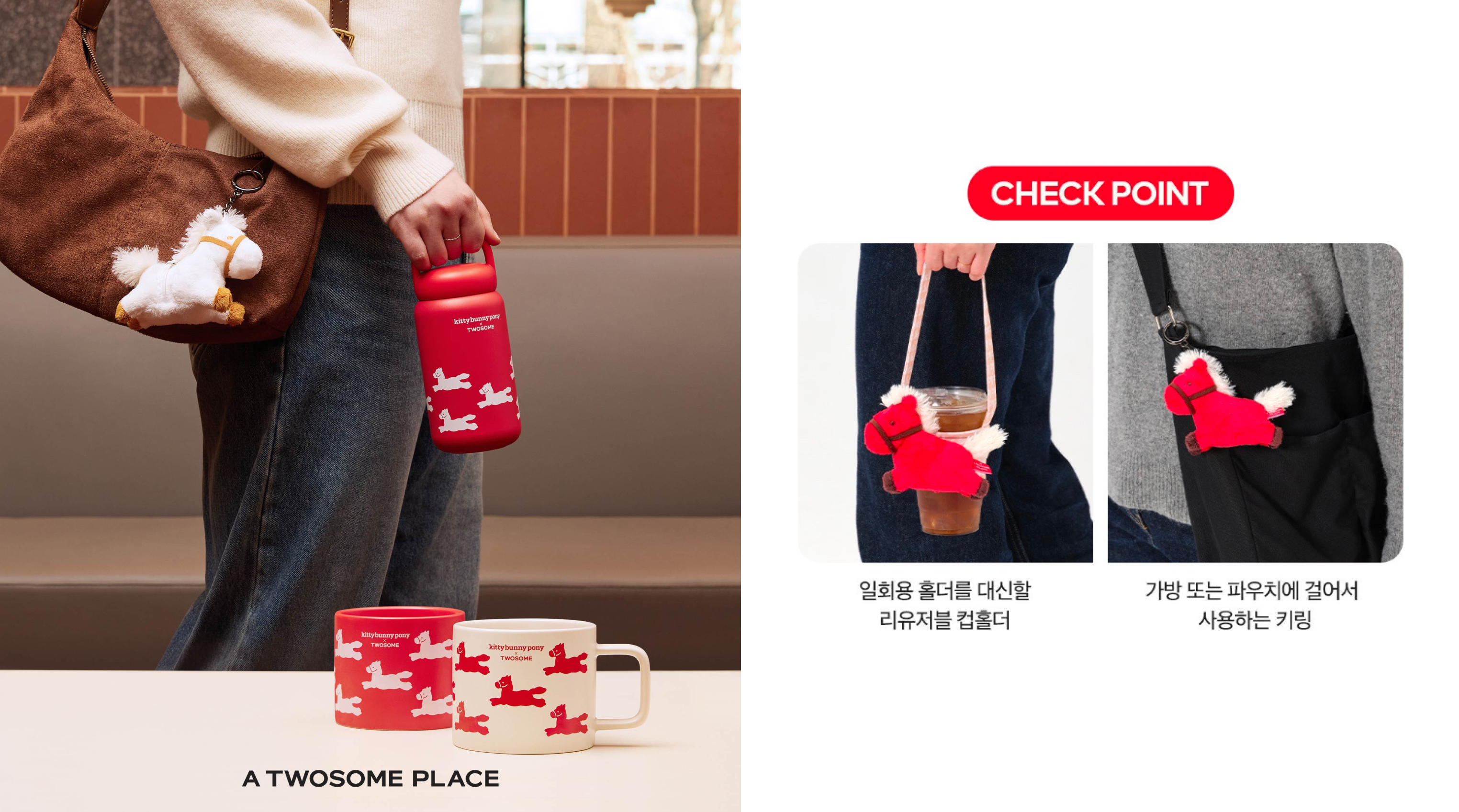 투썸플레이스가 지난주, 새해를 기념한 한정판 굿즈를 출시했습니다. 그중에서도 특히 붉은 말의 해를 상징하는 말 모양 키링이 인기인데요. 패브릭 브랜드 키티버니포니(KBP)와 협업해 완성도 있는 제품을 내놓았거든요. 사실 작년에도 투썸플레이스는 키티버니포니와 함께 런치백을 굿즈로 출시하며 큰 화제를 모았었습니다. 이번에도 '믿고 사는 조합'이라는 입소문을 타며 매장에서 빠르게 소진되고 있어요. |
