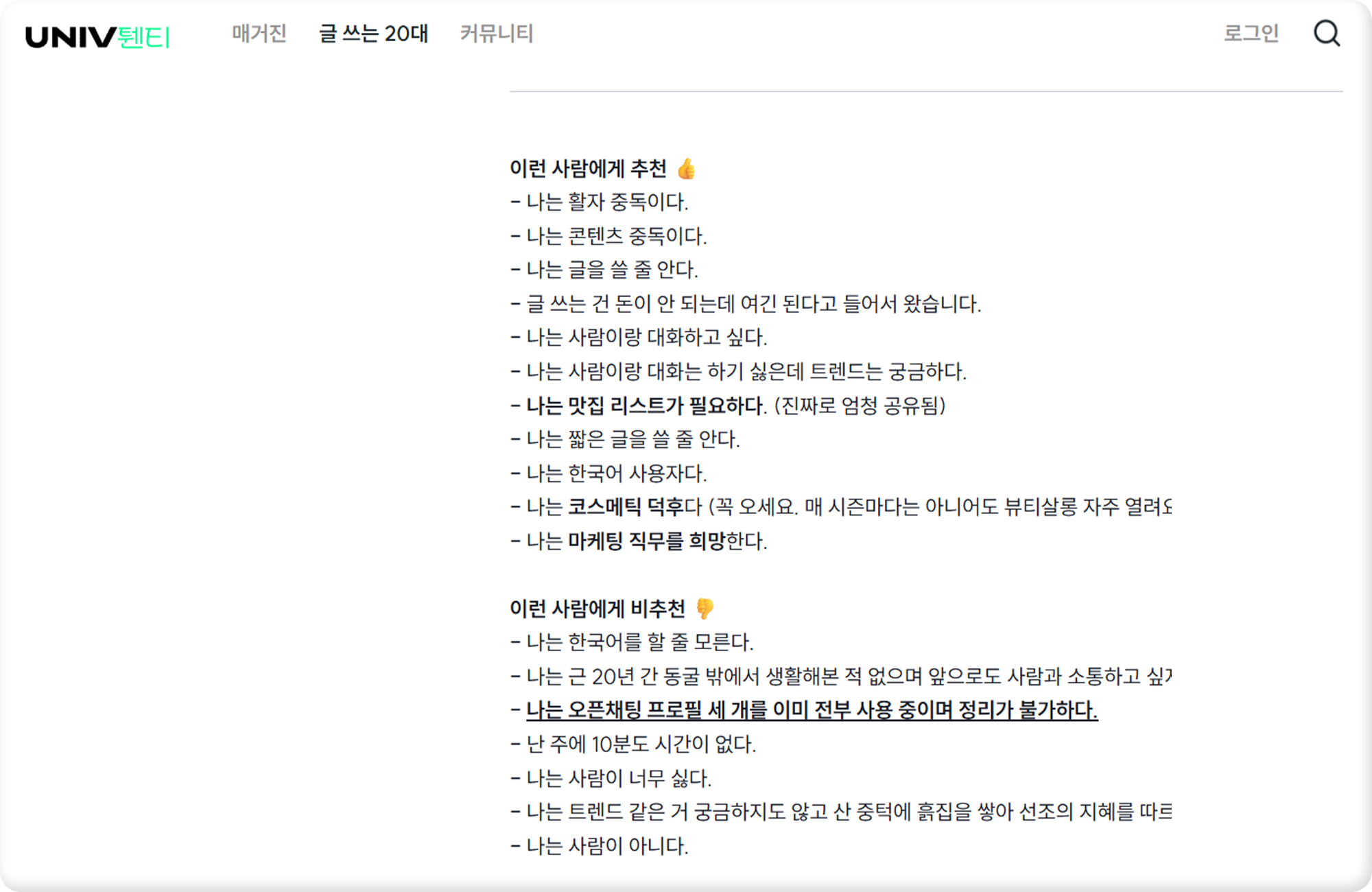 저는 대학교 때 마케팅 대외활동을 하면서 20대연구소를 처음 알게 됐어요. 중요한 발표 때마다 20대연구소의 데이터나 트렌드 도서 키워드를 앞단에 자주 활용했거든요. 제트워크 시즌 1에 참여하기도 했었고요. 그렇게 어렴풋이 알고 있다가, 취업 준비를 할 때 인턴 채용 공고가 떠서 바로 지원했어요 🙋