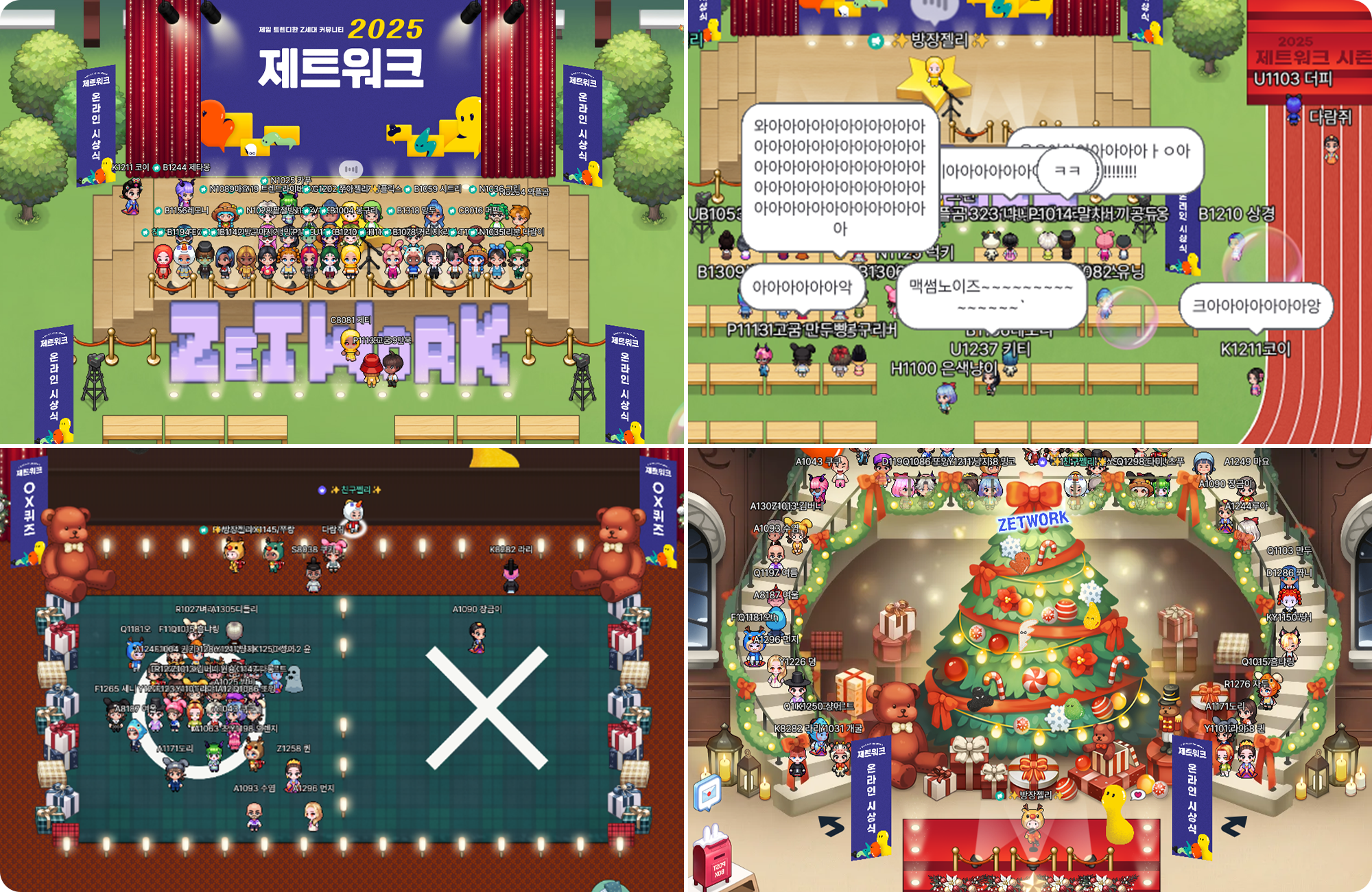 온라인 기반 활동인 만큼 제트워크 수료식은 메타버스에서 진행되는데요. 그때 그때 과몰입해서 수료식 장소를 꾸미고 있습니다. 봄에는 야외 페스티벌 느낌으로 꾸미고, 가을에는 러닝 트랙을 만들기도 했어요. 실제로 달리기 게임도 했고요. 최근에 진행한 겨울 수료식에서는 연말 시상식 느낌으로 꾸몄습니다. 사실 제가 어릴 때부터 심즈나 동물의 숲 같은 꾸미기 게임을 즐겨 했는데요. 마치 게임하는 것처럼 재밌더라고요!