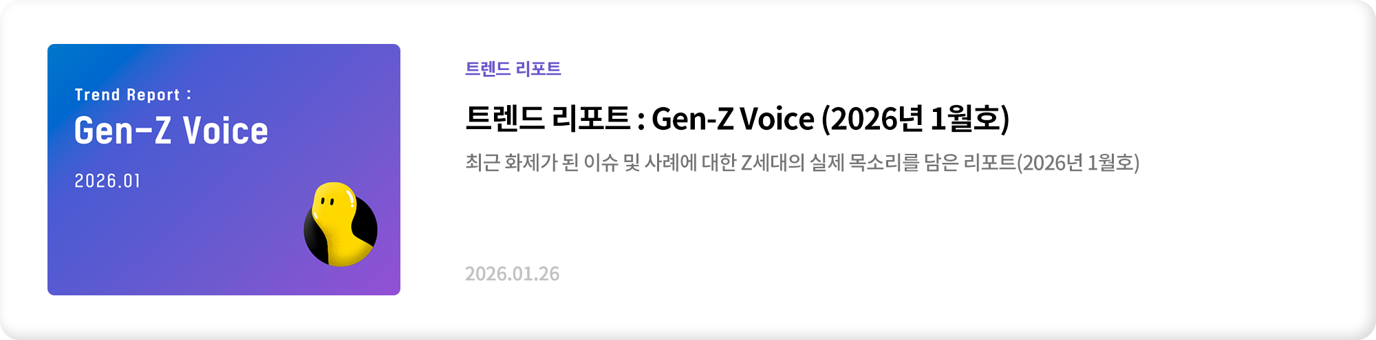 작년부터는 제트워크 참여자들의 일상 속 트렌드 사례를 ‘트렌드 리포트(Gen-Z Voice)’로 정리해서 발간하고 있어요. 저는 연구원 직무는 아니지만, Z세대와 가장 많이 소통하는 제트워크 운영자로서 이들의 생각을 잘 정리하고 의미 있는 인사이트가 이어질 수 있도록 고민하고 있습니다.