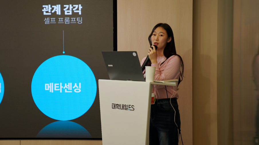 사내 강연 '당써먹'을 통해 트렌드 키워드를 소개하는 문다정 선임연구원 ⓒ대학내일ES