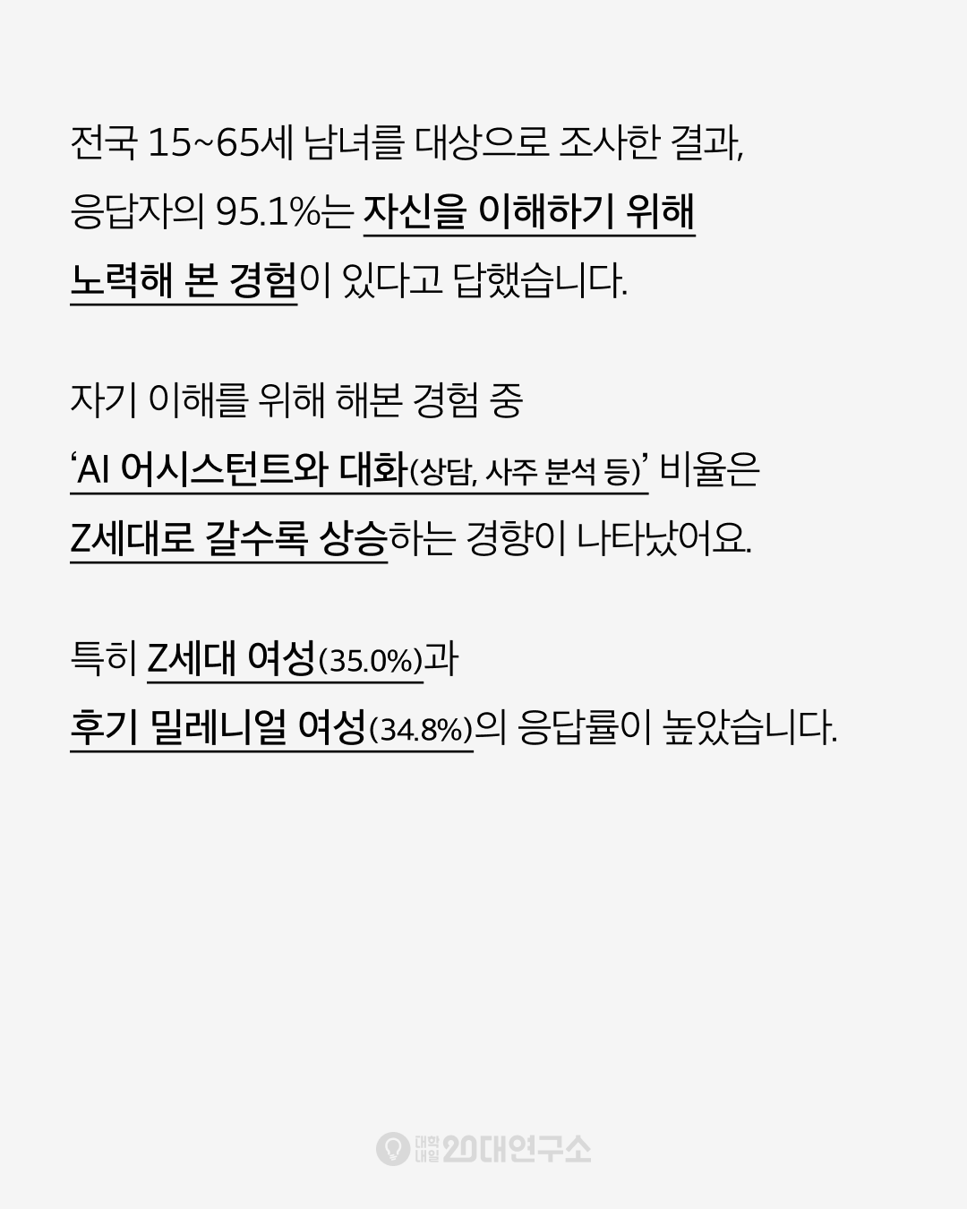 응답자의 95.1%는 자신을 이해하기 위해